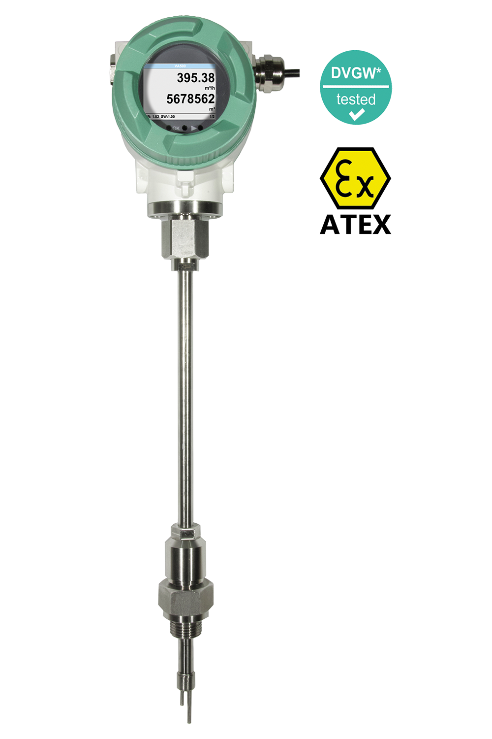 La sonde à insertion VA 550, avec boîtier en aluminium de construction robuste et ayant une protection IP67 est idéale pour l’installation sur des réseaux d’air comprimé de gaz déjà en place. Pour tuyau de diamètre de 3/4“ à 20’’. Le capteur transmetteur VA 550 mesure le débit volumique, la vitesse et la consommation (totalisation) des gaz. Il convient aux milieux agressifs et s’adapte sur les appareils de mesure à poste fixes ou portables