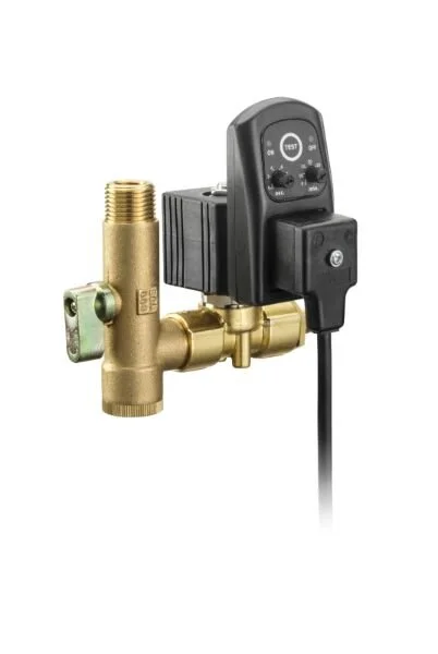 Disponible avec entrée/sortie 1/4’’ NPT et 1/2’’ NPT, avec tamis et valve d’isolement, bouton test manuel, orifice large de 7/16’’ réduisant les chances de bloquer, 3-225 psig, lumière indiquant que la valve est sous tension ou ouverte, rallonge de 6 pieds pour raccordement à une prise 110V.